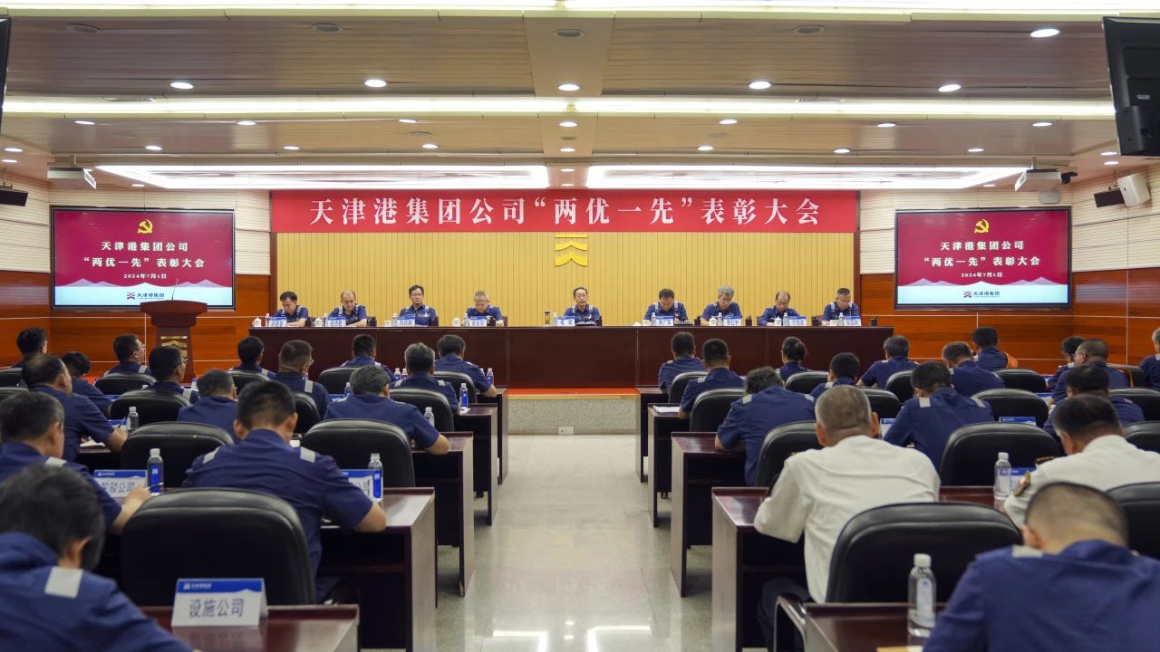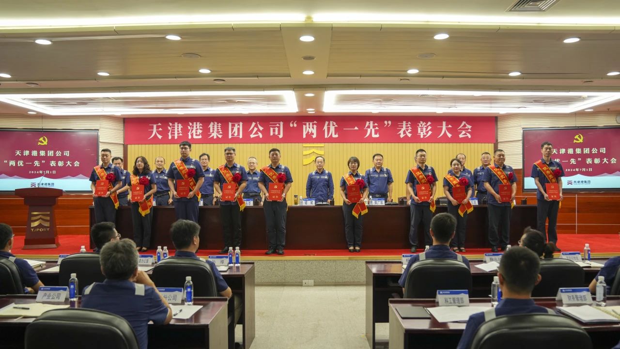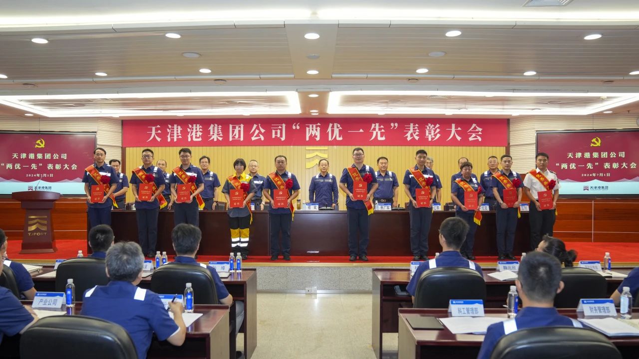 7月1日上午,天津港集团召开“两优一先”表彰大会,庆祝中国共产党成立103周年,深入学习贯彻习近平新时代中国特色社会主义思想,共同回顾党的光辉历程,传承党的优良传统,集中表彰一批在集团公司“双一流”建设各条战线中,作出突出贡献的优秀共产党员、优秀党务工作者和先进基层党组织,激励广大党员干部进一步不忘初心、牢记嘱托,为争做建设中国式现代化港口“排头兵”贡献新力量。