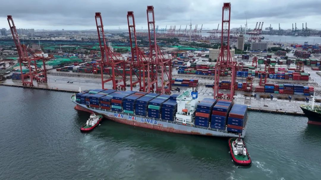 7月29日下午,万海航运“吉春”轮靠泊天津港集装箱码头,标志着万海航运直航南美新航线在天津港正式开通,进一步拓展天津港全球海运网络布局,强化航线枢纽能级,持续增强天津港“一带一路”海陆交汇点辐射带动作用,为畅通国内国际双循环,服务构建新发展格局贡献“津港力量”。