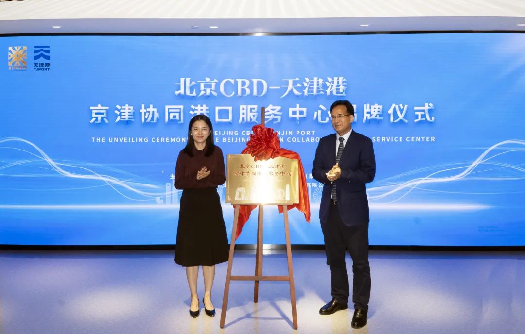 为深入落实天津市委“十项行动”,助推京津冀协同发展走深走实,推动北京市朝阳区政府与天津市滨海新区政府签署的战略合作框架协议落地实施,6月14日下午,由天津港集团联合北京CBD管委会、北京朝阳海关共同设立的“北京CBD-天津港京津协同港口服务中心”在京揭牌成立。天津港集团副总裁刘庆顺、北京CBD管委会主任陈黛出席揭牌仪式。