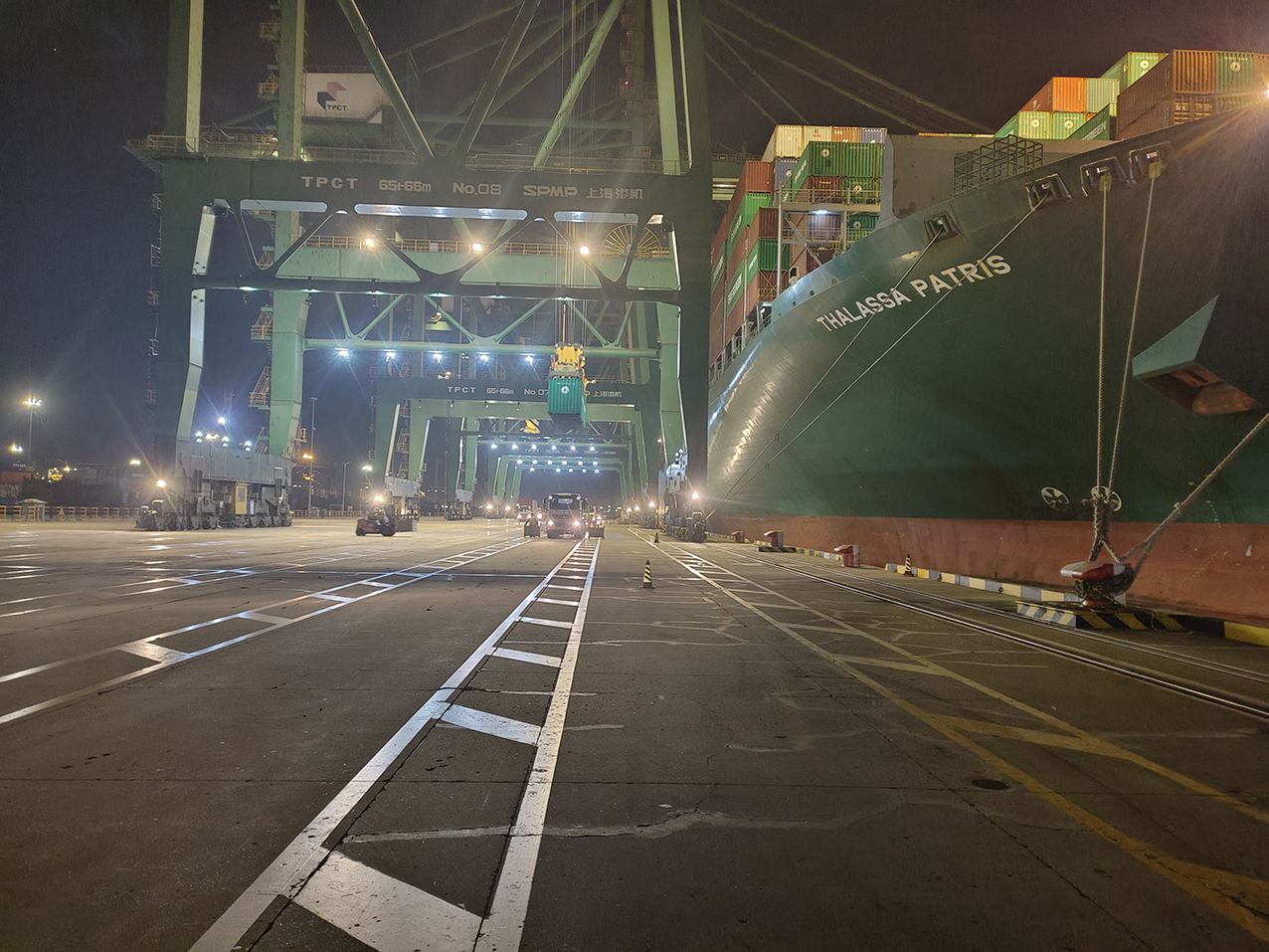 随着2023年钟声的敲响,太平洋国际公司在以高标准、高质量、高效率完成“中谷20”轮与“新锦福2”轮装卸任务后,随即迎来了新年第一条内贸精品航线—中谷厦门线,“舟晟7”轮缓缓驶入,停靠在东5泊位,与之遥相呼应的“海邦”轮、“平顺01”轮井然有序的同步投入到火热的生产作业中。夜晚的海风寒冷刺骨,但却无法阻挡现场作业人员们的工作热情,他们打起十二分精神,以饱满的精神状态,精准实现一个个集装箱的平稳落箱。新年首日,太平洋国际公司集装箱吞吐量近15000标准箱,以笃行实干、稳中求进的作风,不断提升内贸航线服务品质,赢得客户高度赞誉。