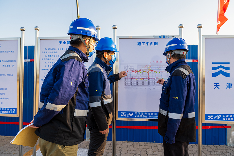 该项目位于太平洋国际集装箱码头场内,由3台总装机容量达15MW的分散式风电机组组成,将于2023年2月实现全部机组投运发电。