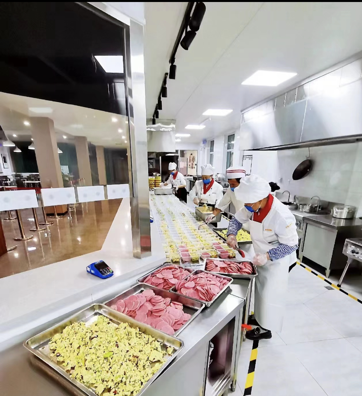 生服公司认真落实集团公司“当好服务员、筑牢防波堤、成为风景线”的“三个定位”要求,积极做好人员调配和后勤服务保障工作。“堡垒”工程启动后,公司主要负责人身先士卒,坐镇一线指挥全局,各物业项目部在重点岗位安排人员值班值守,确保后勤服务保障24小时在线;加强门岗人员业务培训,强化进出人员检查,严把防疫第一道关口;增加垃圾清理频次,确保港区环境卫生干净整洁。同时,第一时间安排食堂人员返岗,确保港口员工正常用餐,9月26日晚至30日,各食堂在岗人员300余人,共为全港员工供餐约15万份,保障了港口员工餐饮需求;还及时补充各类物资,确保防疫物资满足30天需求,米面粮油等主要食品物资满足10天需求,为港口防疫和生产提供了有力后勤支撑。