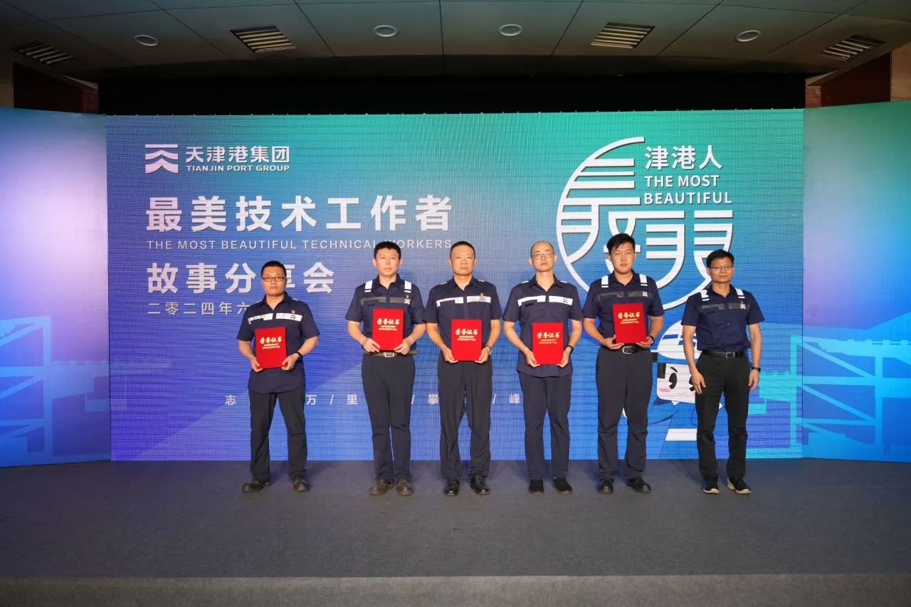 6月27日,天津港集团举行“最美技术工作者”故事分享会,来自集团公司各单位的10名“最美技术工作者” 们,在现场倾情讲述他们扎根智慧港口、绿色港口建设的感人故事。集团公司副总裁杨杰敏出席并为“最受关注最美技术工作者”颁奖、集团公司总工程师杨荣为“最美技术工作者”获得者颁发奖杯。