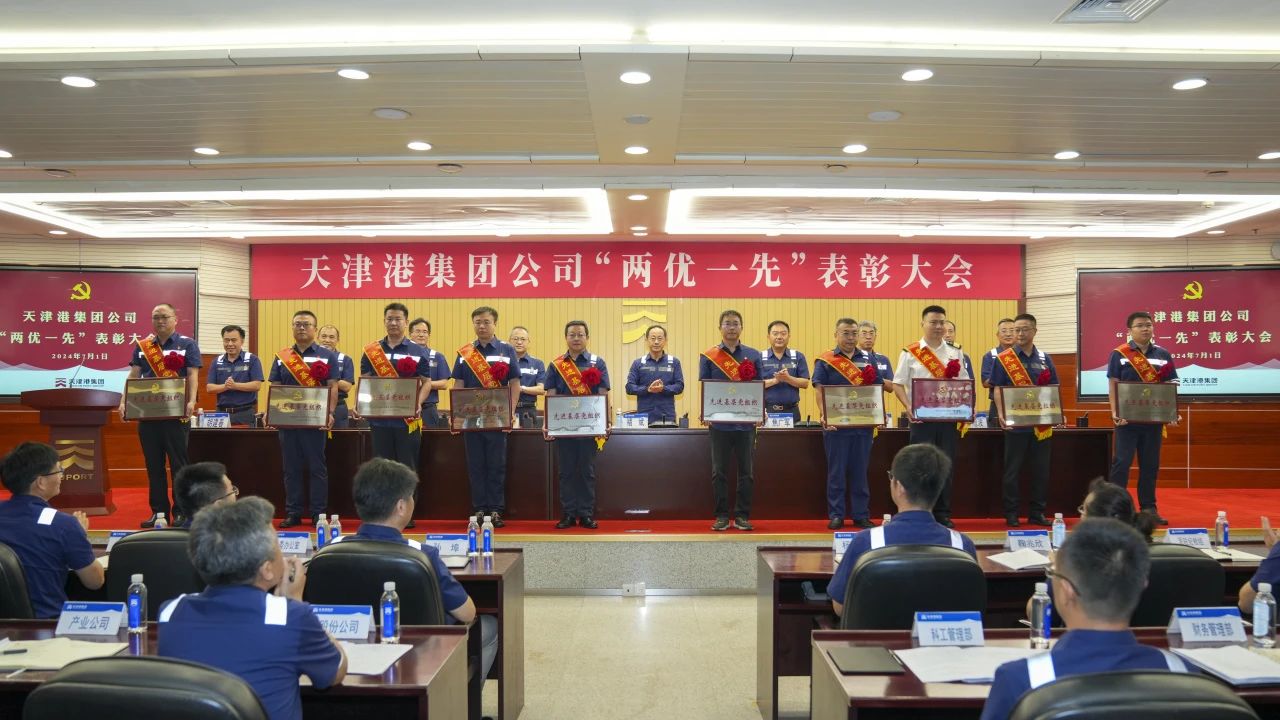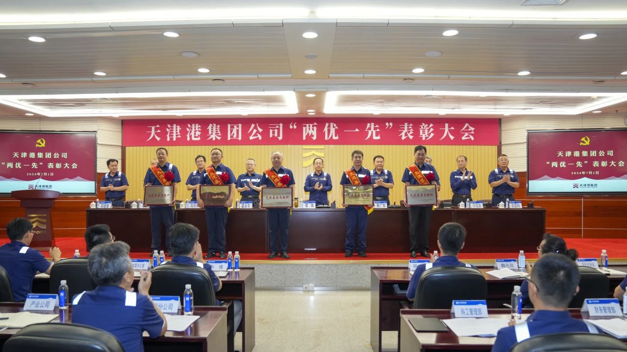 7月1日上午,天津港集团召开“两优一先”表彰大会,庆祝中国共产党成立103周年,深入学习贯彻习近平新时代中国特色社会主义思想,共同回顾党的光辉历程,传承党的优良传统,集中表彰一批在集团公司“双一流”建设各条战线中,作出突出贡献的优秀共产党员、优秀党务工作者和先进基层党组织,激励广大党员干部进一步不忘初心、牢记嘱托,为争做建设中国式现代化港口“排头兵”贡献新力量。