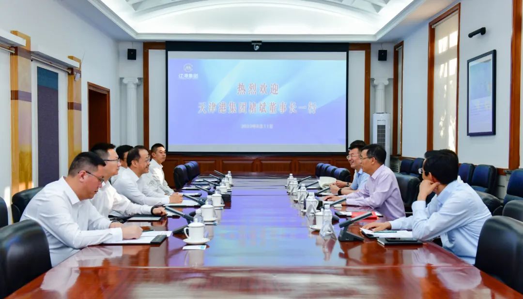 8月11日下午,天津港集团党委书记、董事长褚斌带队拜访辽宁港口集团,与辽宁港口集团党委书记、首席执行官王志贤进行座谈,双方围绕强化两港协同、实现合作共赢开展了深入务实的交流。天津港集团副总裁罗勋杰、辽港股份总经理魏明晖等参加会见。