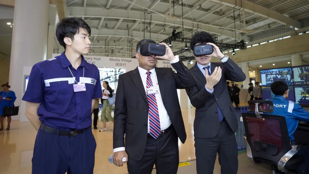 天津港集团把“岸桥/场桥远控模拟系统”带到了夏季达沃斯论坛。来自世界各国的嘉宾们坐进新时代港口司机的“驾驶台”,通过操作摇杆、触摸屏进行港口仿真模拟作业,现场“试驾”,亲身体验智慧化港口操作过程。带上VR设备,通过5G网络,嘉宾们看到实时回传的港口生产作业场景,以身临其境的视角,感受码头前沿的风光。