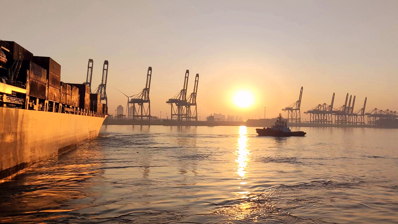 当新年的第一缕晨光洒向海面,天津港百里港湾呈现一派繁忙景象。来往于世界各地的货轮在主航道有序进出,一艘艘货轮顺利停靠,一辆辆载满货物的卡车鱼贯而行,码头各类装卸设备运行流畅……