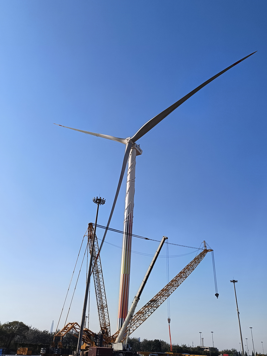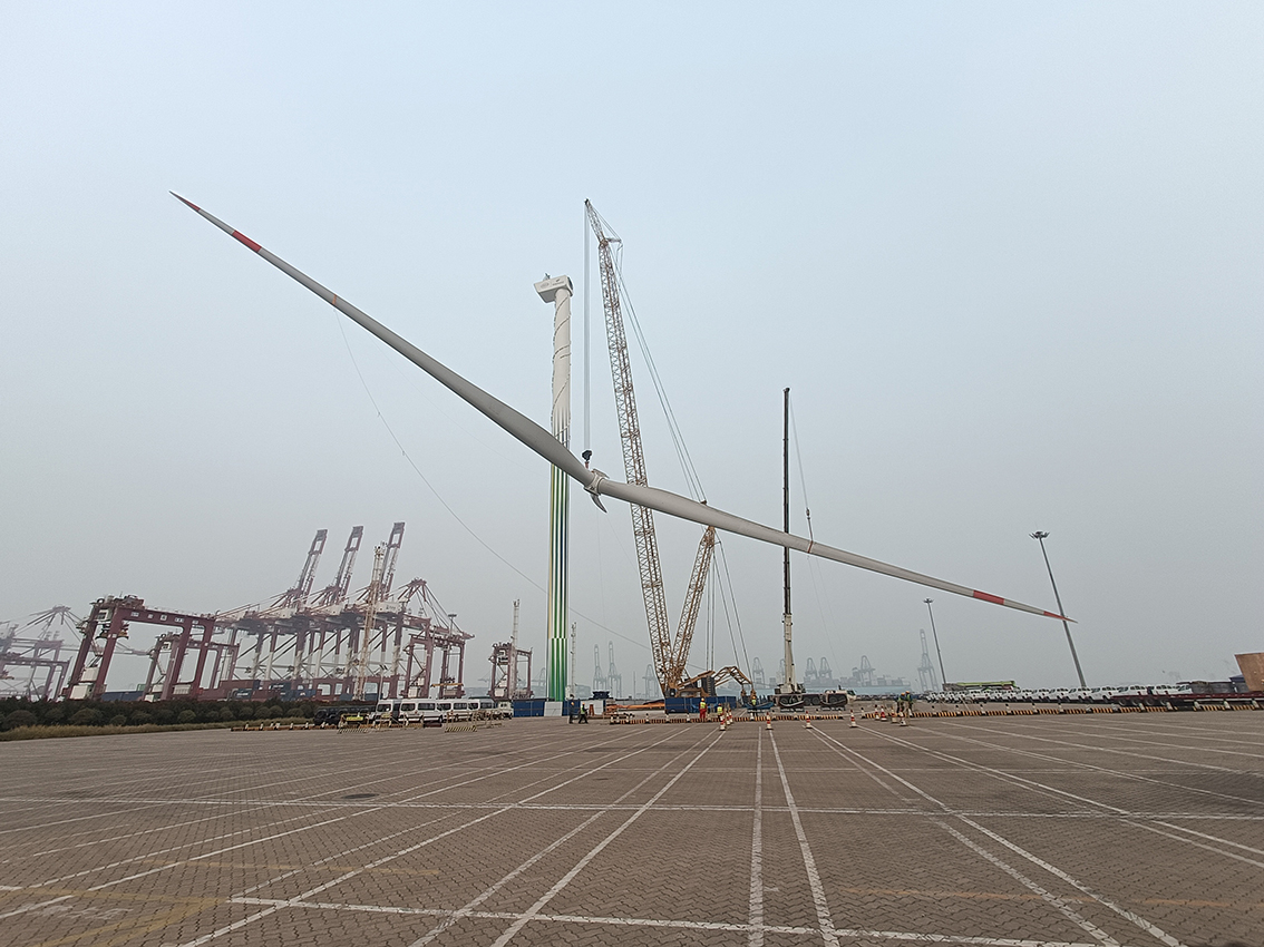 在项目建设过程中,港航工程公司充分发挥专业优势,从风能测试到地质勘察、风机选型到土建工程、环境保护、水土保持设计等各方面开展大量研究,以卓越的施工技术及一流的施工速度,安全优质高效推进项目建设。“面对疫情,寒潮、大风等不利影响,我们坚持“质量是生命 满意是追求”的理念,密切关注天气动态,充分抓住每天作业的窗口期分秒必争,圆满实现171机型在天津港的顺利安装,再次刷新国内陆上最大单体风机吊装纪录,展现了大家一直以来所保持的高度责任心和拼搏精神。”项目负责人王雷说。