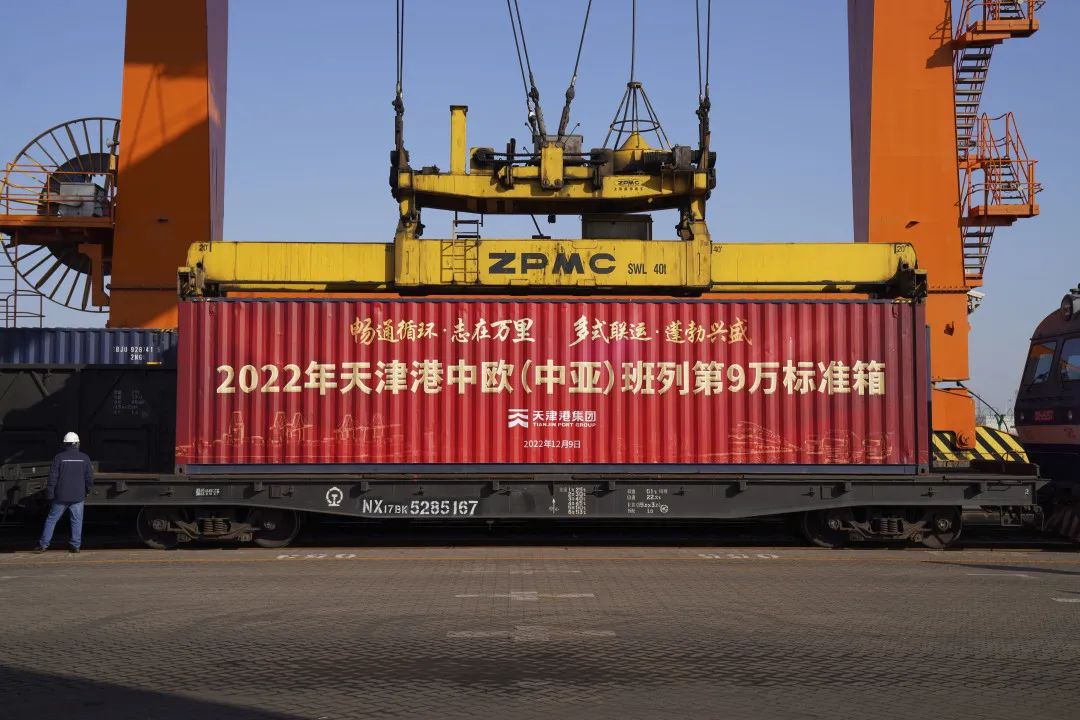 12月9日上午,一列满载工业品、生活用品的集装箱班列从天津集装箱中心站缓缓驶离,将沿着“中蒙俄”经济走廊千山万水奔向亚欧大陆腹地,这标志着天津港2022年中欧(中亚)班列运量首次突破9万标准箱,同比增幅近60%,进一步巩固了天津港陆桥国际班列运量居全国沿海港口首位的领先地位。这是天津港服务“一带一路”沿线国家和地区经贸合作日益走深走实的生动缩影,为推动构建新发展格局,助力国际产业链、供应链稳定畅通发挥了重要作用。