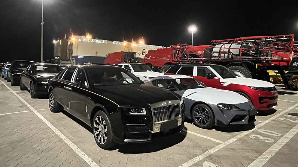 日前,搭载517辆外贸商品车的“黎明骄傲”轮靠泊海嘉码头。此次接卸作业除了奔驰、宝马MINI、丰田、路虎等常客外,还有1辆劳斯莱斯库里南以及4辆劳斯莱斯古斯特。这是劳斯莱斯品牌豪华轿车首次在海嘉码头公司作业,标志着海嘉码头公司汽车服务品牌再添“重量级”大咖。