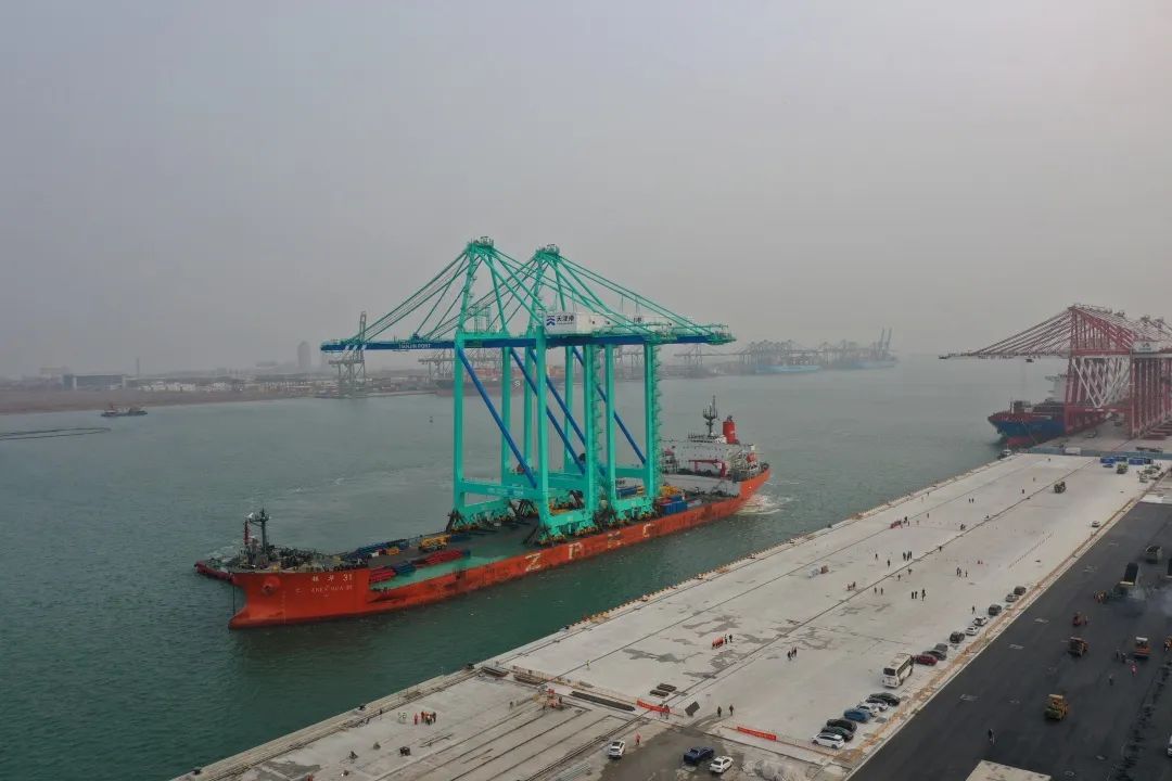 2020年上半年,上海因超长梅雨季节拖慢了岸桥制造的进度。这期间,天津港工作人员却没有一丝的懈怠,他们积极与上海方面协商调整施工调试计划,监造工程师更是几乎全年“驻扎”在工厂里,以保证了设备制造进度和质量。技术部副经理陈培回忆说:“尽管本应早已到位的码头设备迟至初冬才到达,但当2020年11月16日,一期首批2台青色岸桥到岸到达时,大家都兴奋的提前到岸边等待。虽然天气特别寒冷,但大家的干劲火热高涨。”