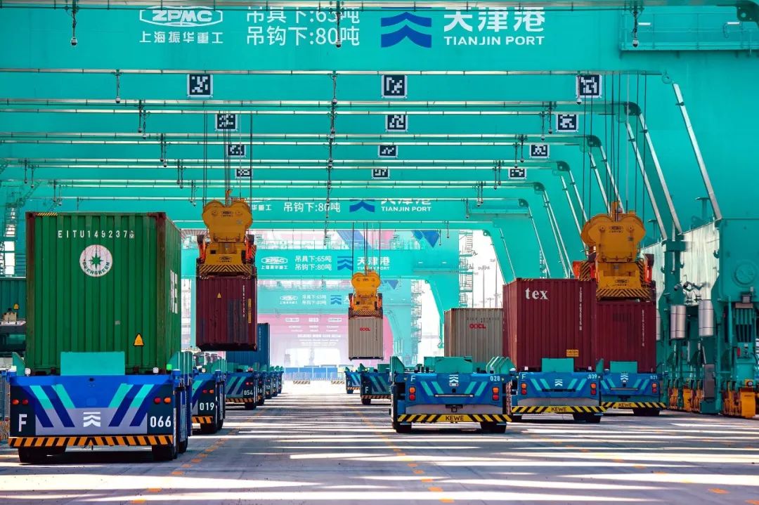 从施工建设到调试形成生产能力,这个“0”到“1”再到“N”的过程,传统自动化集装箱码头需要6到8年的时间。对于天津港全球首个“智慧零碳”码头,这个周期被压缩到了33个月。得益于我国自主可控的5G、北斗、人工智能等尖端科技的应用,得益于与西方截然不同的中国自主设计的方案,天津港又一次刷新了自动化集装箱码头领域的世界纪录。