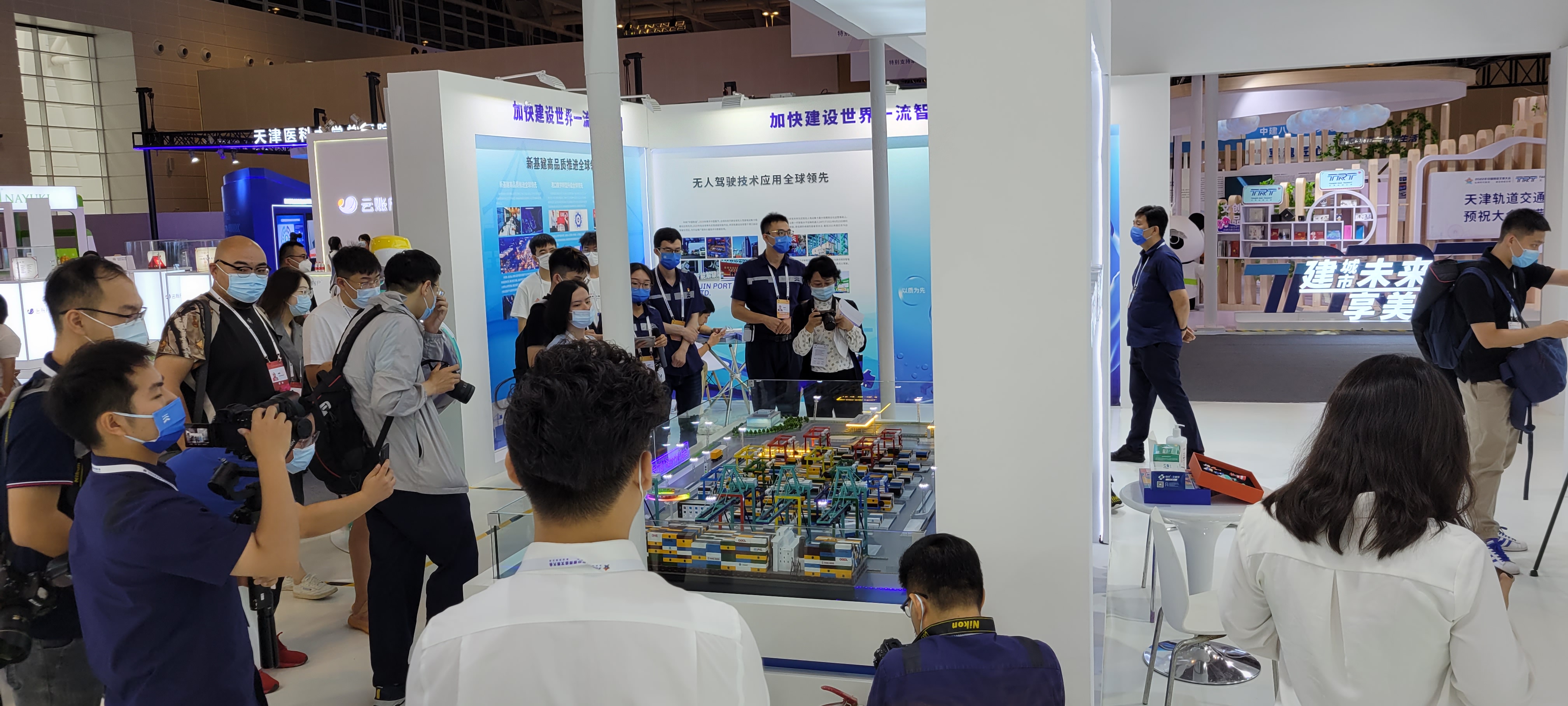 服贸会期间,天津港集团亮相国家会议中心“京津冀联合展台”,天津港股份有限公司、金岸重工有限公司代表参展,结合大会绿色、创新主题理念,以“津港智造”为核心理念融入展览,展示了一系列智慧港口建设的最新发展成果,受到外界广泛关注。“津港智造”以“以质为先、效率至上、创新引领”为品牌理念,以“智造”引领企业转型升级,为天津港世界一流智慧港口建设注入新的活力。