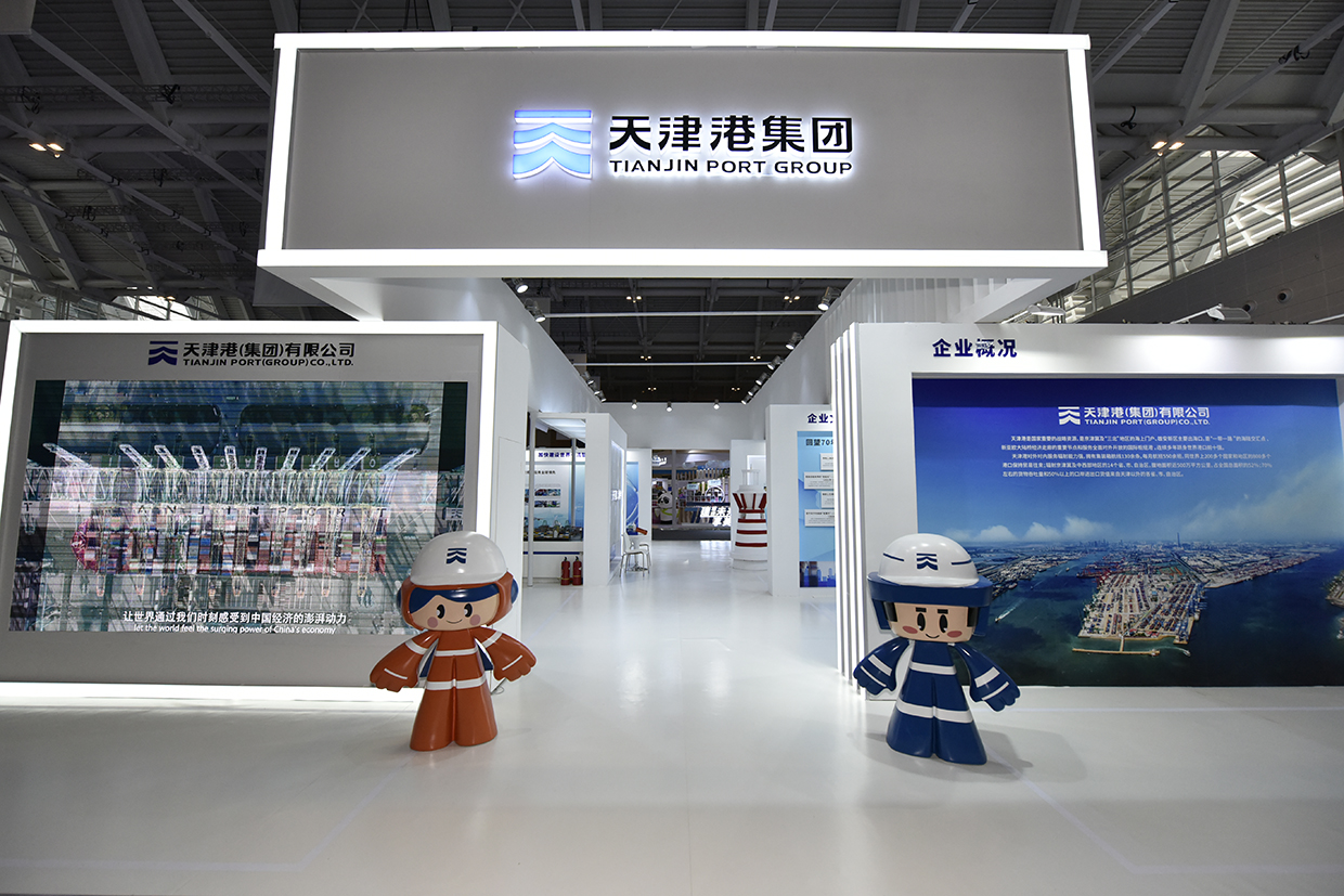 走近展区,津港家族的“天天”“津津”“强港”“登登”在展区热烈“欢迎”观众的到来,循环播放的天津港形象宣传片和大幅天津港全景图引人瞩目,使观众瞬间感受到天津港的大气与繁忙,一同走近这座跨越山海阻隔,将世界贸易联通的国际大港;牢记习近平总书记视察天津港的殷切嘱托,以高质量党建引领企业高质量发展,津港人不断开创天津港蓬勃兴盛的新局面;天津新港重新开港70周年的历史瞬间、历年来天津港先进典型、企业文化核心价值理念、印象津港、津港家族等融为一体,形成天津港特色企业文化体系。