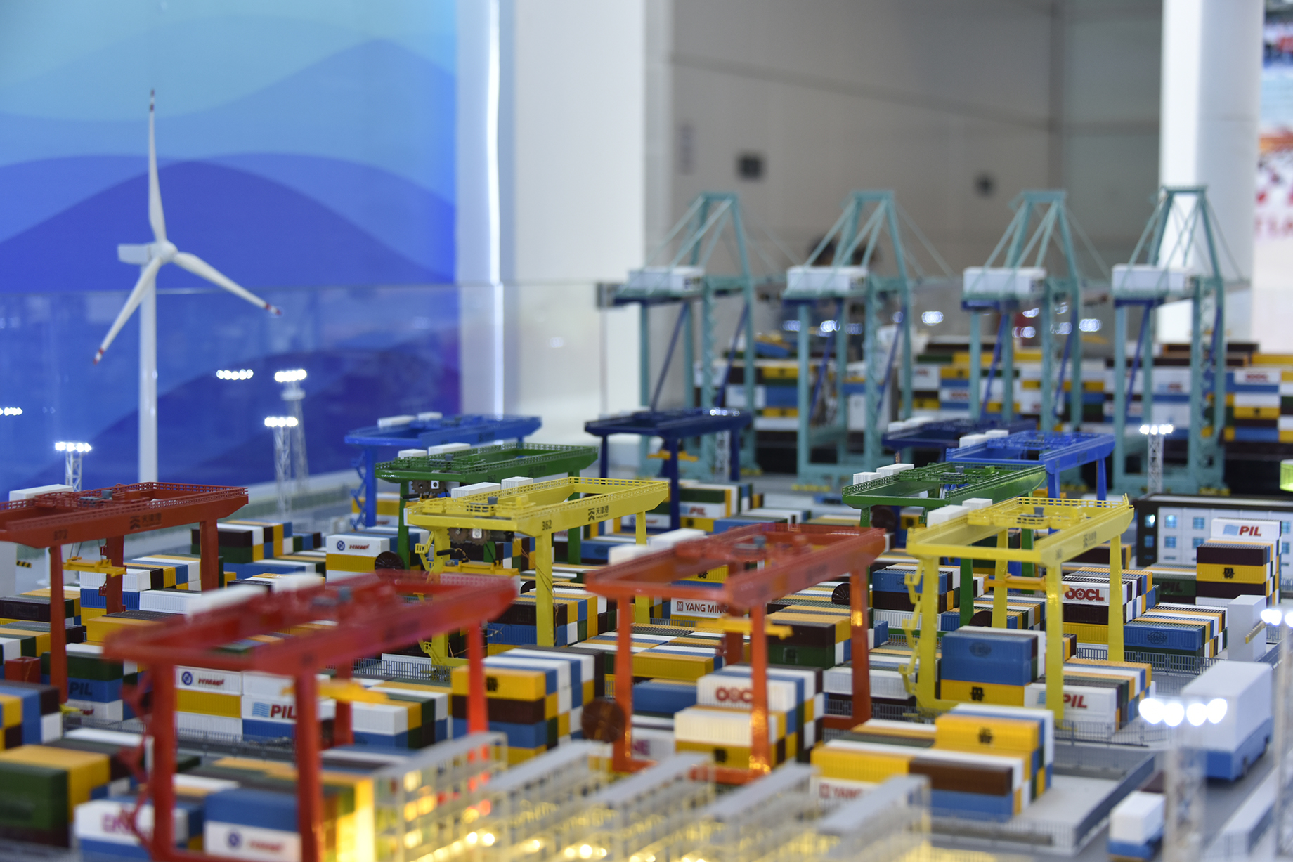 绿色港口展区,通过安全管理提升、环境改善治理、疫情防控责任、绿色运输变革等内容,展现着天津港集团贯彻落实习近平生态文明思想,践行绿色发展理念,全面构建本质安全绿色发展模式,扎实推进绿色港口建设,逐步建设“零碳港区”“零碳港口”;智慧港口展区,“七彩智港”全景式互动沙盘让观众驻足流连,“无人码头”生产作业场景全流程真实呈现。自动化岸桥精准起吊,智能水平运输机器人自动行驶,自动化轨道桥运转不停,两台风电设备稳定运行,以全新模式引领世界港口智能化升级和低碳发展;枢纽港口展区,展示着天津港深化港航协同、积极服务双循环,深入开展“四千行动”等方面取得的显著成果。天津港充分发挥国家重要战略资源作用,深度融入以国内大循环为主体、国内国际双循环相互促进的新发展格局,向世界一流枢纽港口大步迈进。