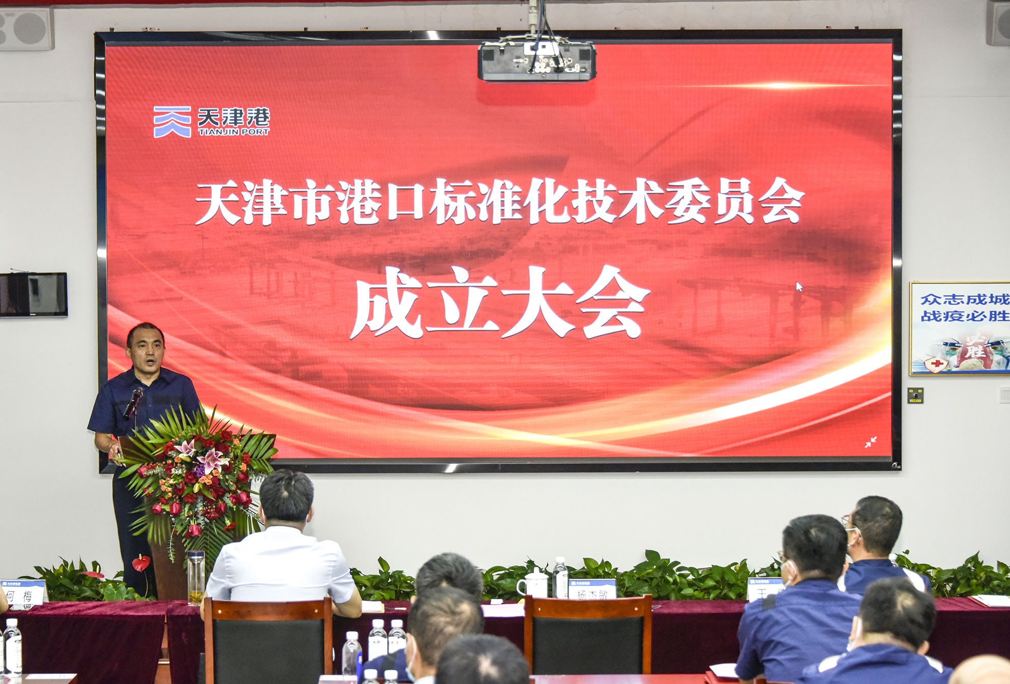 今天上午,全国港口企业首家地方标准委员会——天津市港口标准化技术委员会召开成立大会,正式挂牌成立。交通运输部水运局巡视员解曼莹,交通运输部天科院副院长张华庆、赵洪波,天津港集团副总裁杨杰敏,天津港集团总工程师王伟,全国起重机械标委会臂架起重机分会秘书长张德文,天津市交通运输委建设管理处处长韩福前,天津市市场委标准化处副处长何梅,国家水运工程检测设备计量站副站长韩鸿胜,交通运输部标准中心总工程师汪炜,天津市节能协会秘书长刘立全以“现场+视频”方式出席参会。会上,全国港口标准化技术委员会发来贺信,向大会的召开表示祝贺,杨杰敏致辞。