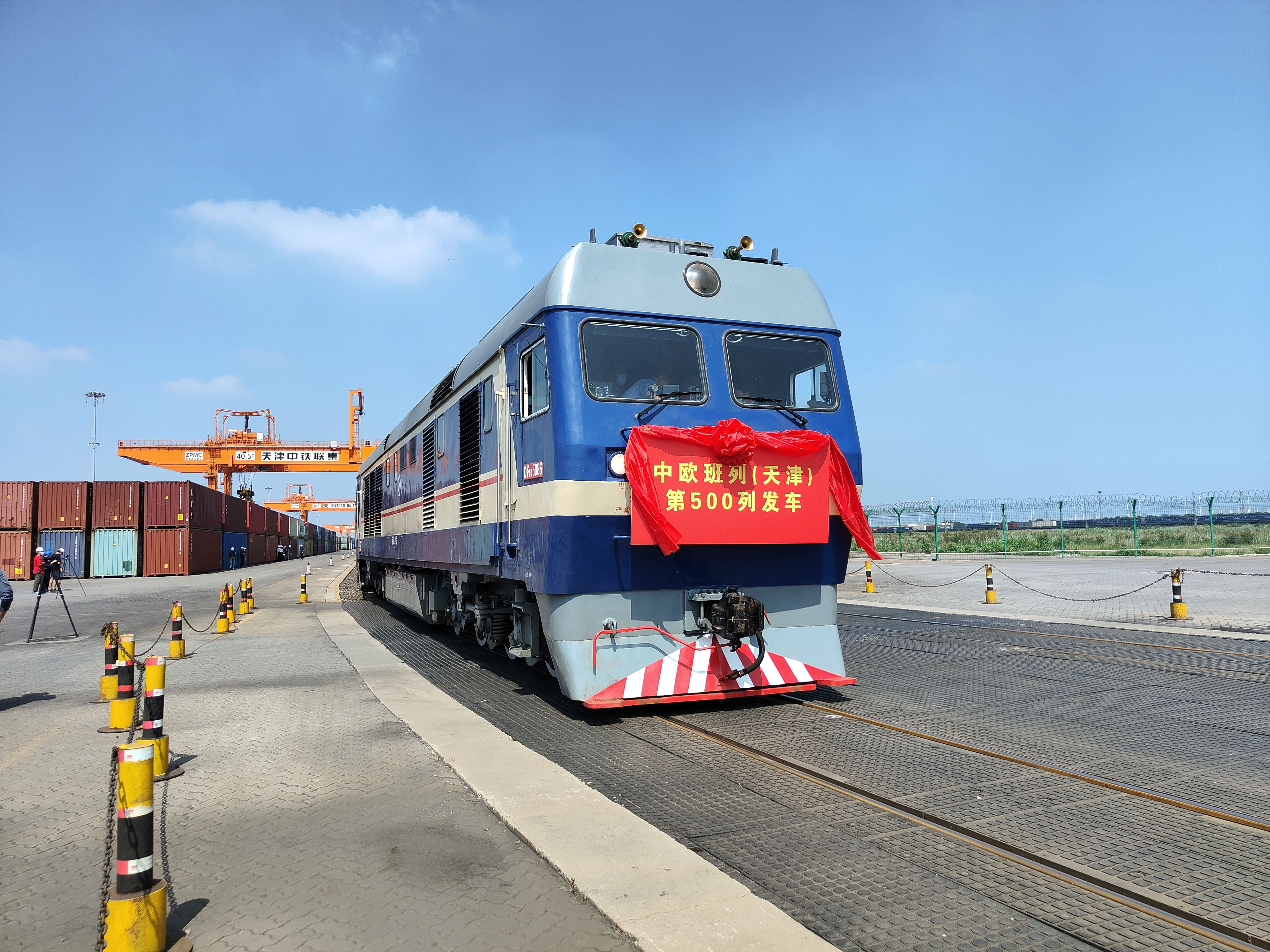 8月11日上午,随着一阵汽笛长鸣,一列满载着机械设备和食品等日用品的中欧班列,从天津集装箱中心站缓缓驶离,最终目的地为蒙古国乌兰巴托。这是今年以来天津口岸发运的第500列中欧班列,运送集装箱总量超50000标箱,同比增幅均超过79%,增幅居全国前列,再创天津口岸历史新高。
