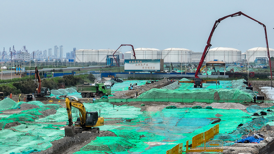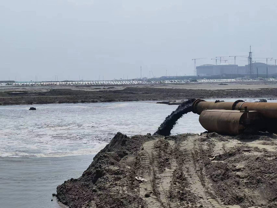 在天津港北支航道上,航道拓宽工程项目整体平稳推进。偌大的太阳挂在高空,火辣阳光下大型挖泥船正不停地疏通拓宽航道,数公里长的岸线边十多台挖掘机同时作业,将海中淤泥装载到前来装车的卡车上,一派热火朝天繁忙景象,相隔不远处,数处百米长的围埝工程项目也正在落成。项目建成后,将提高天津港港区航道通航能力和通航效率,有力促进天津港世界一流枢纽港口建设。