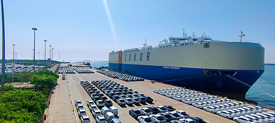 5月18日,2984辆国产商品车和95件设备搭乘“黎明昌盛”轮,由天津国际邮轮母港码头驶往南美洲,创今年天津港外贸商品车单船出口作业量新高,进一步稳定了南美洲滚装航线的班次。