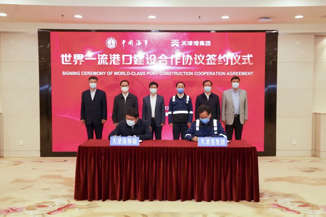 会议期间,天津港集团与天津海事局签订《世界一流港口建设合作协议》,刘庆顺、杨哲代表双方在协议书上签字。根据《协议》,双方将坚持绿色低碳、智慧赋能、枢纽提质、共享共赢的合作原则和工作目标,打造绿色港口标杆、引领智慧港口发展、助力枢纽港口建设、深化港口服务品牌,充分发挥在各自领域的专业优势,全力推动天津港世界一流绿色智慧枢纽港口建设。