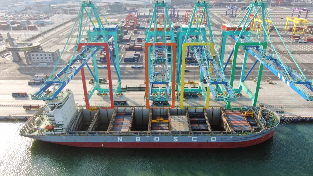 3月24日凌晨,随着“新明州76”轮最后一钩作业完成,天津港第二集装箱码头公司智控中心传来喜讯,该轮全自动化作业效率再创新高,平均单桥效率达34.6箱/小时,离泊时间比原计划提前4小时!