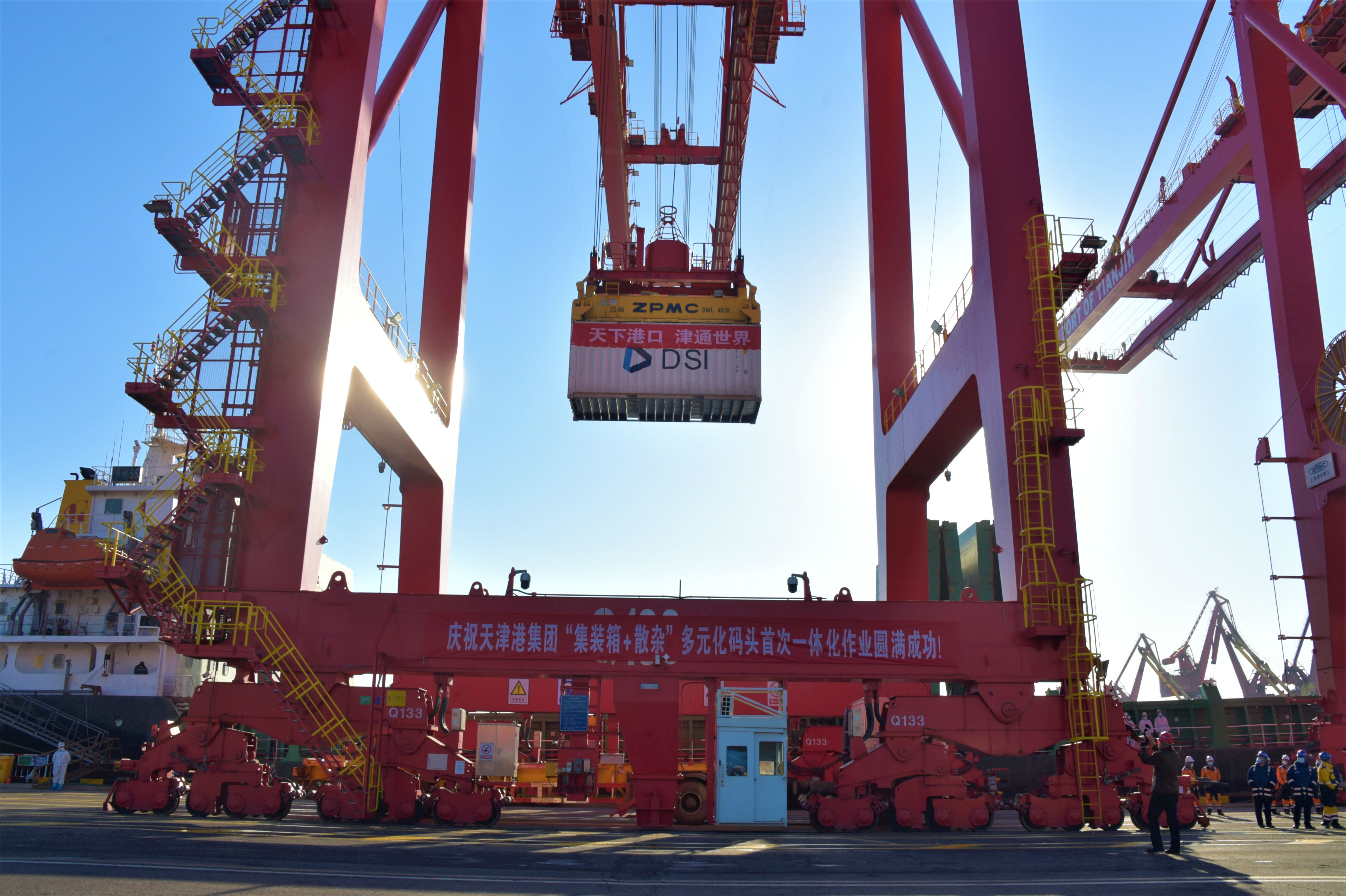 天津港北疆港区21段泊位是全国首个专业化集装箱码头,为进一步提高码头泊位对接卸集、散、杂多用途船舶的适应性,在市港航局、天津海关、天津海事局、天津边防检查总站的大力支持下,寻找最优解决方案,天津港第四港埠公司启动运营“集装箱+散杂”多元化码头一体化作业新模式。