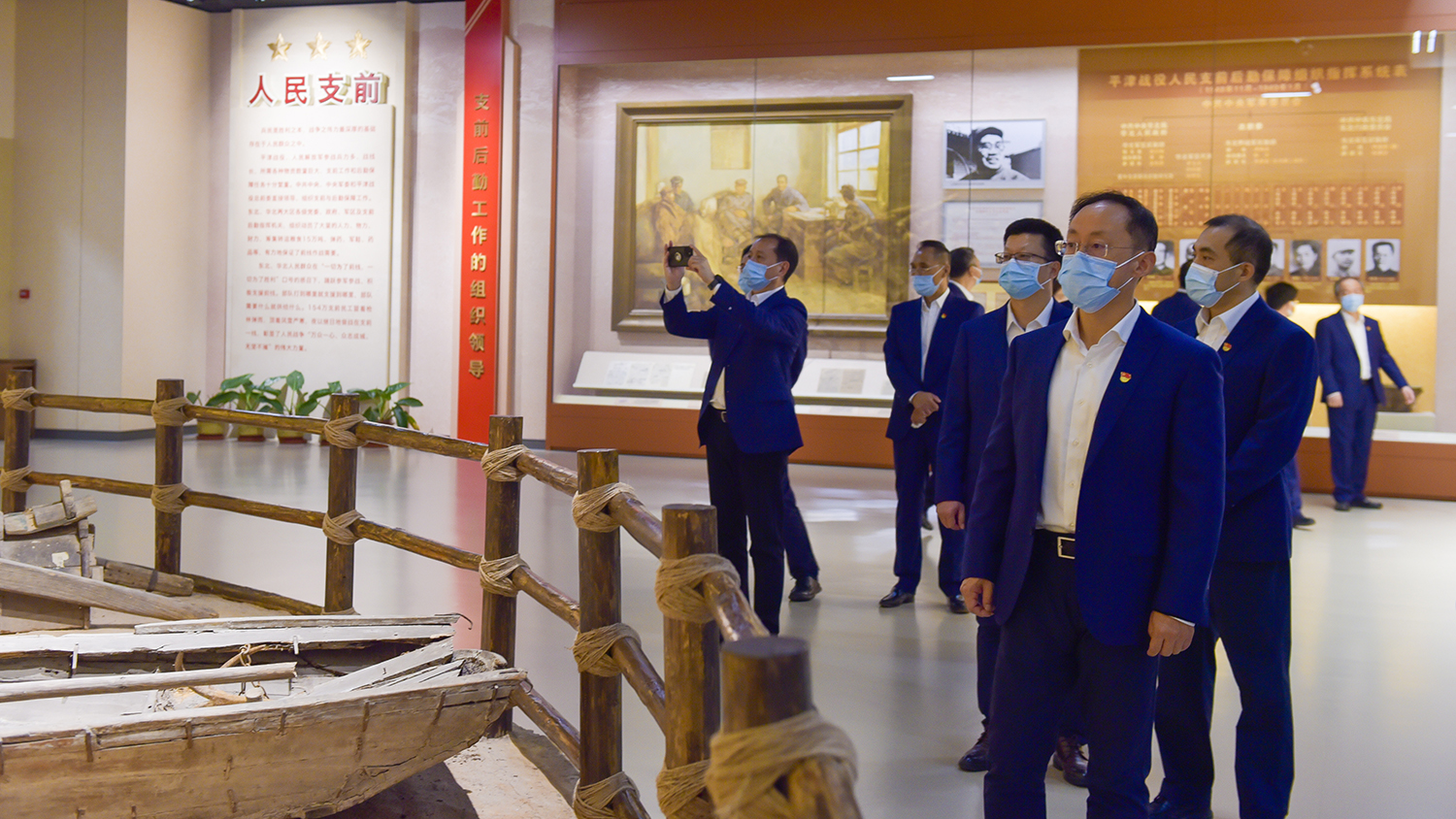 随后,集团公司领导步入纪念馆主展馆,依次参观了序厅、战役决策厅、战役实施厅、人民支前厅、英烈业绩厅、伟大胜利厅六部分展览。展览通过文物、雕塑、绘画等多种形式,结合声光电多元化视听、互动体验多种手段,全景立体展现了平津战役的全过程。大家参观了平津战役推演沙盘、金汤桥会师的珍贵照片、解放战争中的长短枪支、人民群众支援前线的木船推车、镌刻着烈士姓名的英烈墙……仔细聆听讲解人员详细生动的介绍,认真感受历史细节,深刻感悟中国共产党人砥砺奋进的初心和使命。