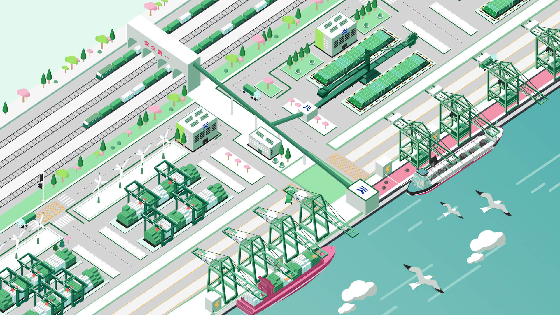 绿色港口以绿色、美丽、宜业为路径,深化“三基”建设,坚持陆上、海上绿色港口建设“两手抓”,提高绿色标准,适应碳达峰、碳中和新要求,发挥减污降碳协同效应,以发展本质安全、强化管理基础、加强科技应用、优化能源结构、调整运输布局、污染精准防控、美化生态环境为手段,全力构建本质绿色发展模式。